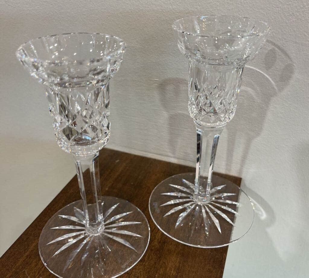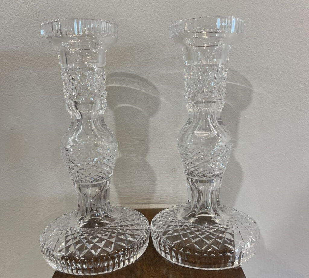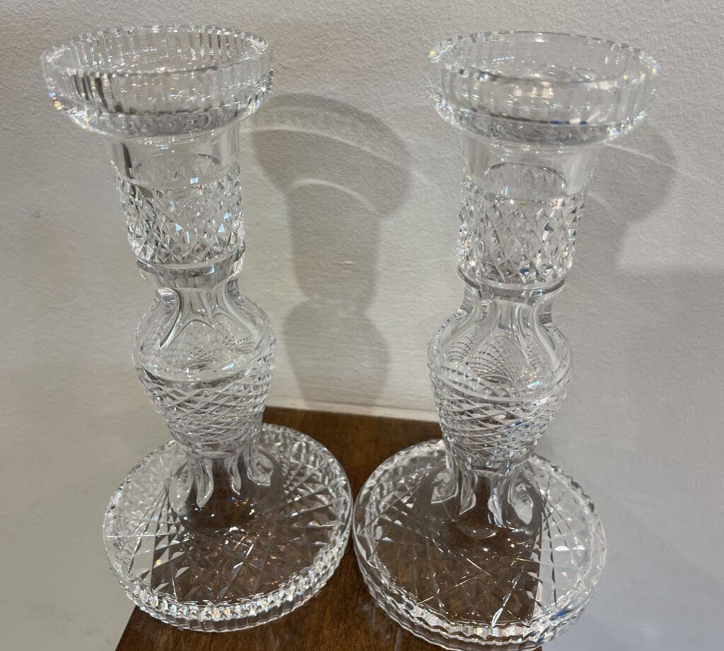 Waterford 2pc Set Crystal Cross Cut Candle Holders ACCESSORIES 4Wx7.5H