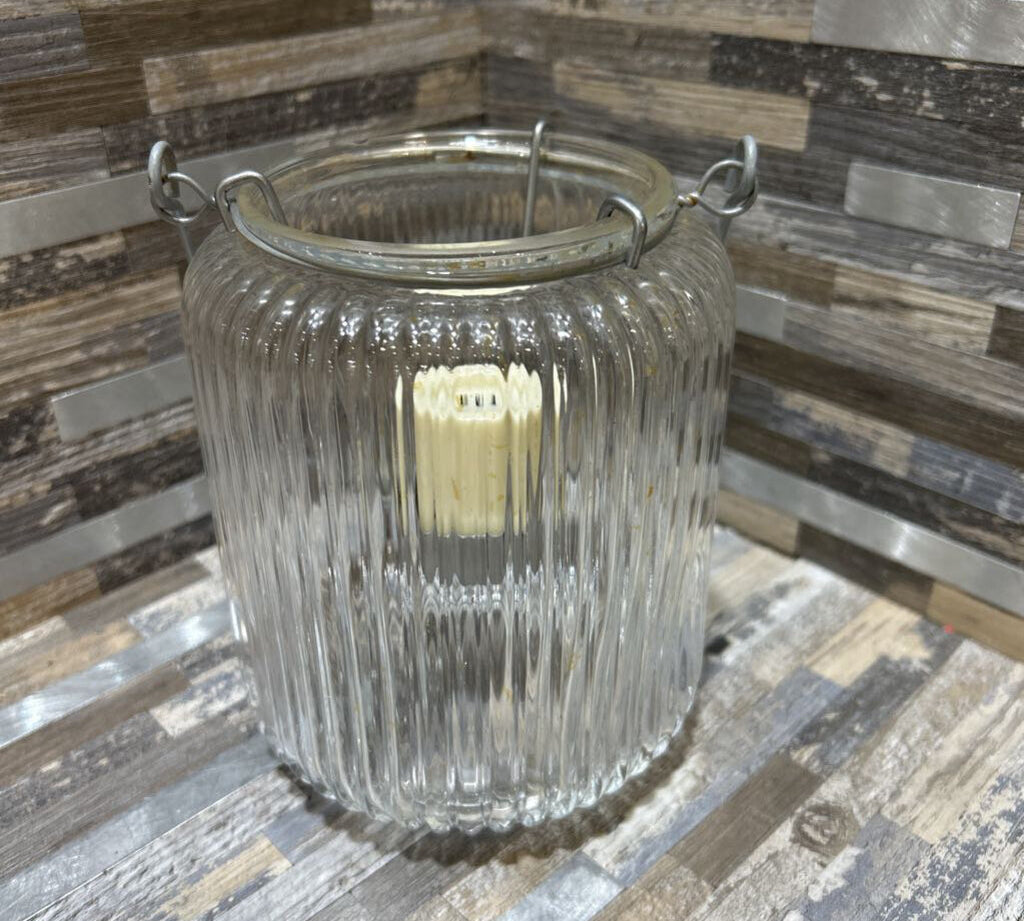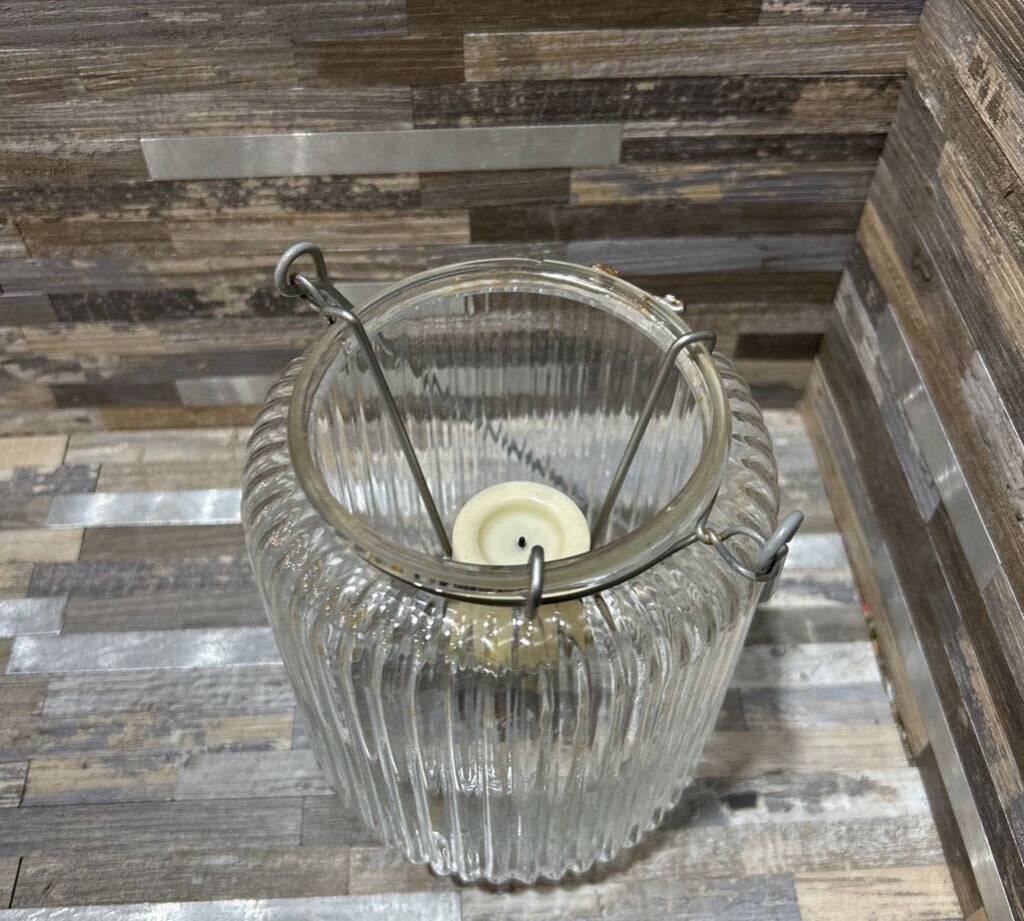 Ribbed Glass Tealight Lantern w/ Metal Handle ACCESSORIES 5d6h